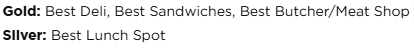 - Best of DFW by The Dallas Morning News: Gold for Best Deli, Best Sandwiches, Best Butcher/Meat Shop, and Silver for Best Lunch Spot.